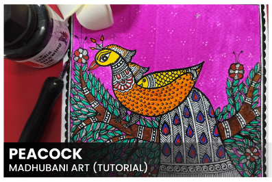 Peacocks in Mithila paintings are a symbol of beauty and elegance, prosperity and good fortune. Learn the traditional Madhubani art form by creating a beautiful peacock painting. This tutorial will teach you the history, significance and technique of Madhubani peacock with vibrant colours and motifs.